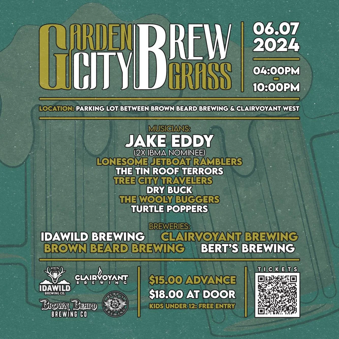 Get ready for a foot-stompin', beer-sippin' good time at the Garden City BrewGrass event! Located outside of Clairvoyant Brewing-West , will feature four Breweries: Clairvoyant Brewing, Brown Beard Brewing, Bert's Brewing and Idawild Brewing.